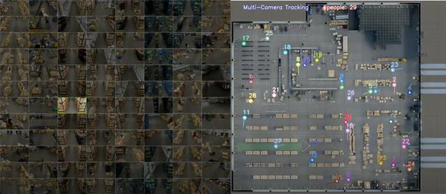 圖 1 是一個實時位置系統(tǒng)示例。在一個 100 個攝像頭覆蓋的 10 萬平方英尺倉庫空間內(nèi),每個人的位置都可以在倉庫平面圖上進(jìn)行追蹤。這樣的系統(tǒng)建立在上述通過正確攝像頭校準(zhǔn)來實現(xiàn)的核心能力基礎(chǔ)上。