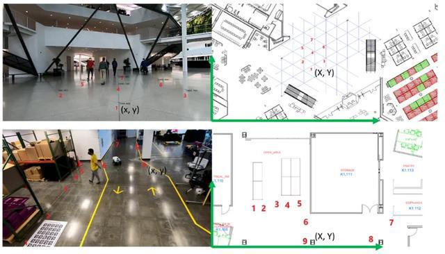 特別是需要一系列地標(biāo),其中每個地標(biāo)的像素值(x, y)和世界坐標(biāo)(X, Y, Z)都是已知的。在我們的許多用例中,指定的世界坐標(biāo)系是一個 2D 笛卡爾平面,或者更具體地說,是一個平面圖的圖像。以平面圖的一角為原點,可以將該笛卡爾平面轉(zhuǎn)換為平面圖圖像的像素值。