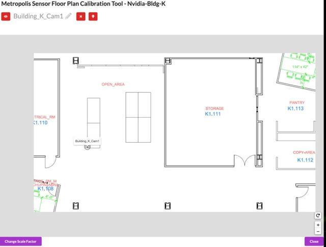 通過攝像頭校準(zhǔn),NVIDIA Metropolis 參考應(yīng)用可以在提供的平面圖上定位檢測到的物體,并建立多個攝像頭之間的物體位置空間關(guān)聯(lián)。這是在智能視頻分析領(lǐng)域,構(gòu)建大規(guī)模實時位置服務(wù)和其他有意義的服務(wù),所必不可少的一個步驟。