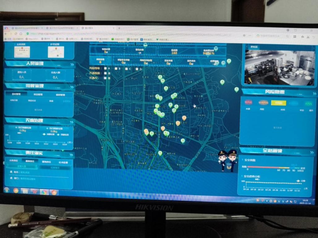 據悉,目前重慶市大渡口區已有100%的中小學、幼兒園校園及“一老一小”機構后廚和95%的火鍋店,以及800余家中小型餐飲戶、無堂食外賣店等主體完成了餐飲環節“互聯網+明廚亮灶+AI智能攝像頭”智慧化升級改造并取得初步成效,該平臺日均抓取各類風險隱患30余條,均以短訊息提示發布到經營者及片區監管人員手機終端。